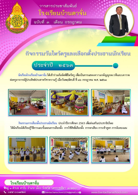 กิจกรรมไหว้ครูและการเลือกตั้งประธานนักเรียนโรงเรียนบ้านตาจั่น ประจำปีการศึกษา 2563