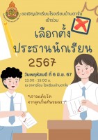 เชิญชวนนักเรียนโรงเรียนบ้านตาจั่นทุกคน ไปใช้สิทธิ์เลือกตั้งประธานนักเรียน ประจำปีการศึกษา 2567