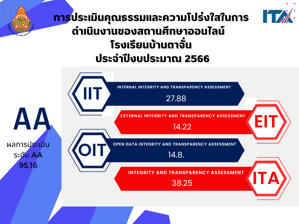 ผลการประเมินคุณธรรมและความโปร่งใสในการดำเนินงานของสถานศึกษาออนไลน์ โรงเรียนบ้านตาจั่น ประจำปีงบประมาณ 2566