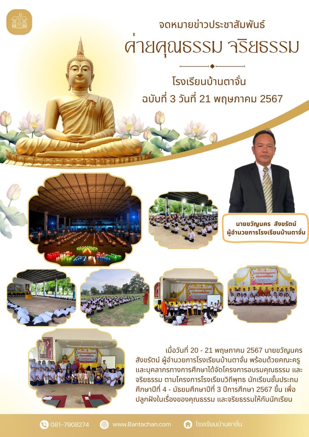 จดหมายข่าวประชาสัมพันธ์ ฉบับที่ 3 กิจกรรมอบรมคุณธรรม จริยธรรมนักเรียน ปีการศึกษา 2567 วันที่ 20 - 21 พฤษภาคม 2567