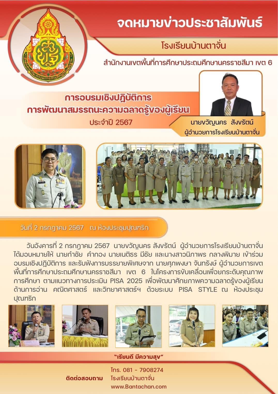 จดหมายข่าวประชาสัมพันธ์ ฉบับที่ 7 “การอบรมเชิงปฏิบัติการการพัฒนาสมรรถนะความฉลาดรู้ของผู้เรียน” ประจำปี 2567